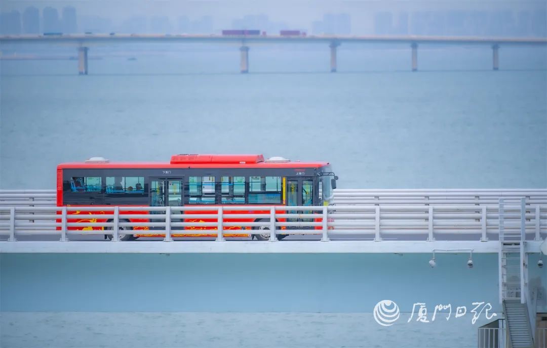 新公交車在廈門大橋上行駛 (資料圖)/ 廈門日?qǐng)?bào)記者 林銘鴻 攝