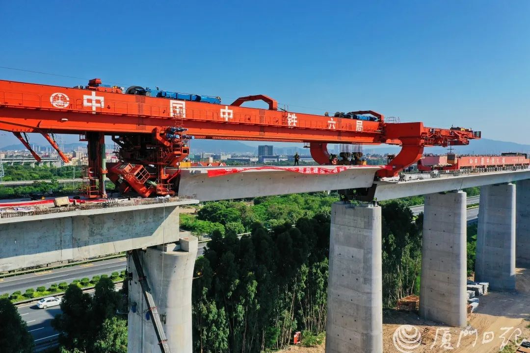 福廈高鐵廈門集美特大橋最后一孔預(yù)制箱梁架設(shè)完成(資料圖) / 廈門日?qǐng)?bào)記者 王協(xié)云 攝