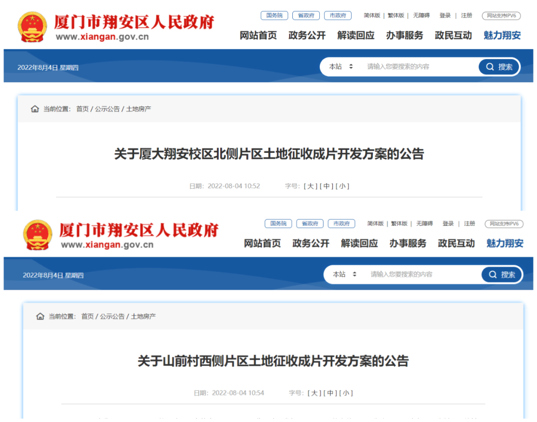 近日,翔安區(qū)人民政府發(fā)布關(guān)于廈大翔安校區(qū)北側(cè)片區(qū)土地征收成片開發(fā)方案、山前村西側(cè)片區(qū)土地征收成片開發(fā)方案的公告。方案涉及翔安馬巷、翔安廈大片區(qū),規(guī)劃住宅用地、建設(shè)高品質(zhì)商務辦公區(qū),開發(fā)范圍總面積超19公頃。