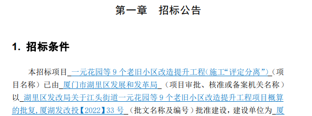 江頭街道一元花園等9個(gè)老舊小區(qū)改造提升工程項(xiàng)目概算已獲批復(fù),發(fā)布招標(biāo)公告。