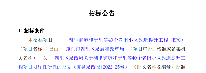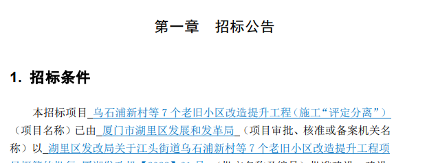 江頭街道烏石浦新村等7個(gè)老舊小區(qū)改造提升工程項(xiàng)目概算已獲批復(fù),發(fā)布招標(biāo)公告。