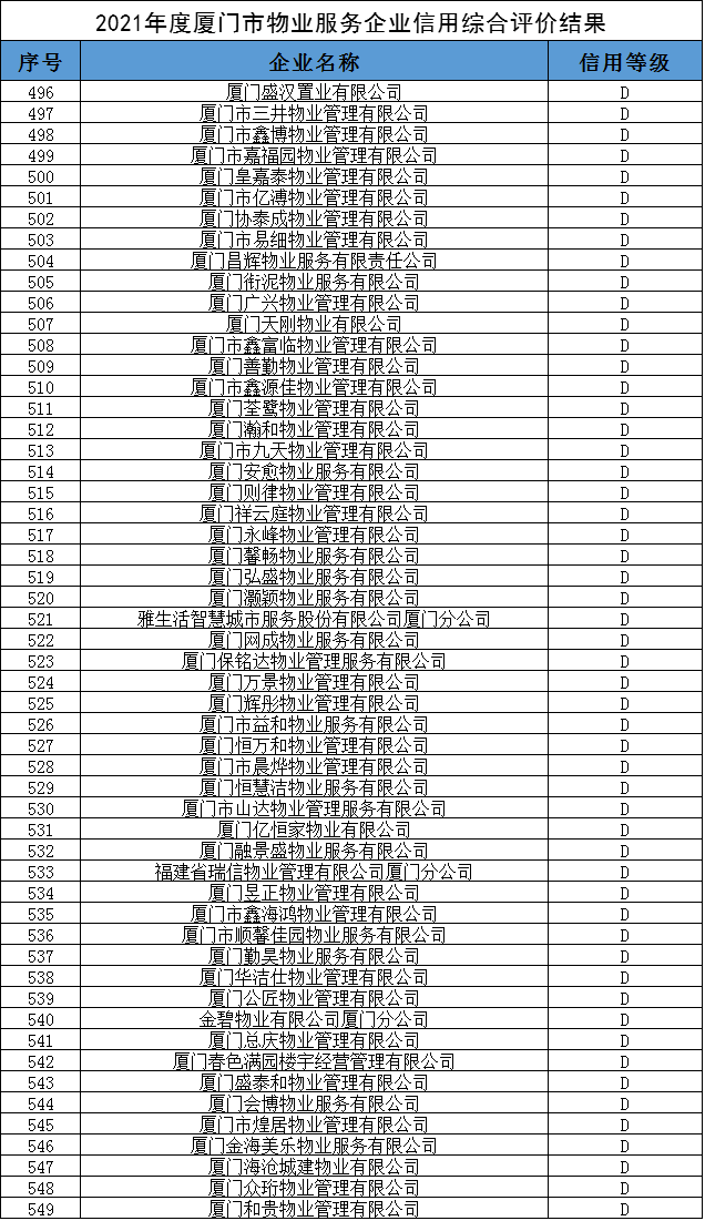 54家物業(yè)服務(wù)企業(yè)信用評(píng)價(jià)結(jié)果為D級(jí);