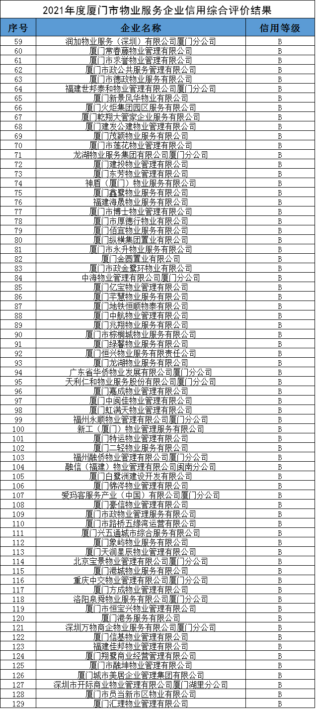 71家物業(yè)服務(wù)企業(yè)信用評(píng)價(jià)結(jié)果為B級(jí);