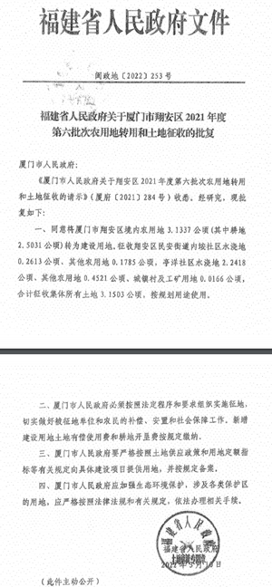 附件:廈門市人民政府關(guān)于翔安區(qū)2022年度第二十二批次農(nóng)用地轉(zhuǎn)用和土地征收的批復(fù)(閩政地廈〔2022〕25號)