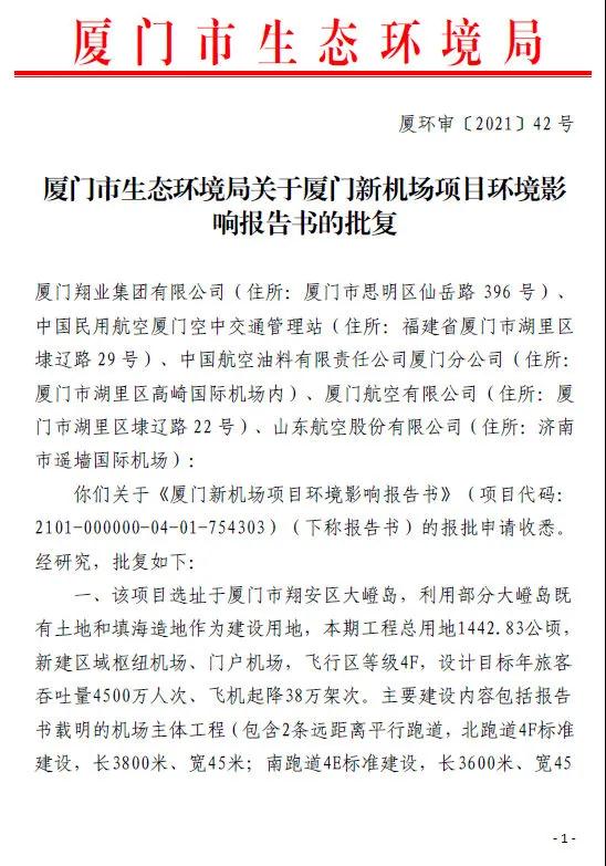 就在昨天,廈門市生態(tài)環(huán)境局批復(fù)關(guān)于廈門新機場項目環(huán)境影響報告書。
