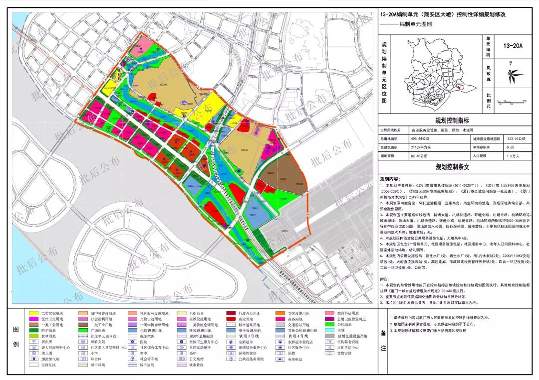其中,翔安區(qū)大嶝13-20A編制單元定位為:依托空港樞紐,注重商務(wù)、商業(yè)環(huán)境的營造,形成區(qū)域高端總部、商貿(mào)金融集聚區(qū),居住人口規(guī)模1.8萬人。