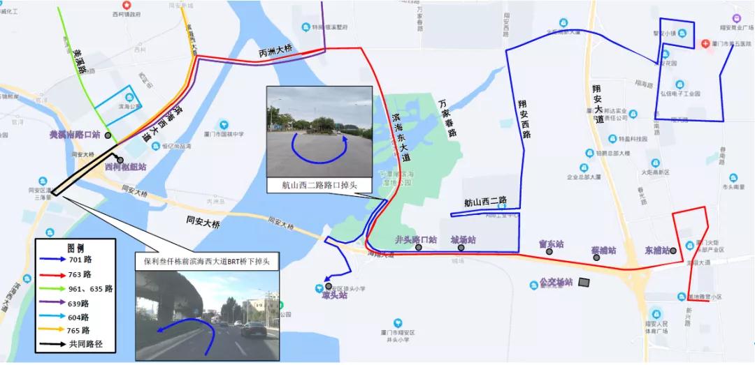 該線路行至杏前路海翔大道路口,改經(jīng)杏前路、杏林北路至杏林北路與杏林東路口,接原線路。904路減停明達、日新路口、杏林消防、廣興南路口、西濱路口、新源路口。925路減停明達、日新路口、杏林消防(往東輝山口)、碑頭(往園博苑)、宜興路口、新源路。