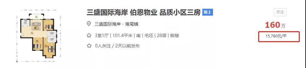至于成交端,查閱近期的成交記錄可以發(fā)現(xiàn),1月份三盛國(guó)際海岸一套4室2廳,建面181.58㎡的別墅,以263萬總價(jià),單價(jià)14484元/㎡的價(jià)格,1天閃電成交。