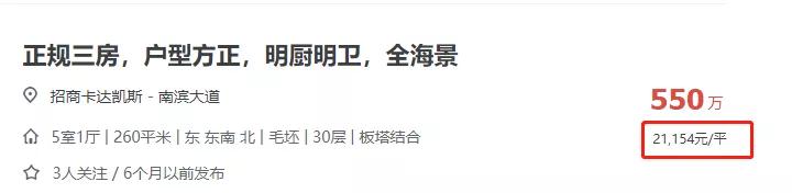 需要指出的是,還有部分房源的掛牌價(jià)達(dá)15780元/㎡。而像網(wǎng)紅盤招商卡達(dá)凱斯有部分全海景二手房掛牌價(jià)破2.1萬/㎡。