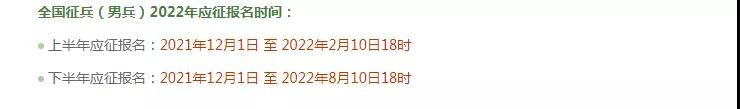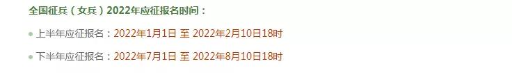 上半年應(yīng)征報名:2022年1月1日至2022年2月10日18時;