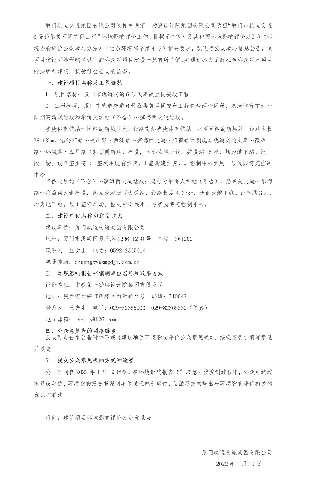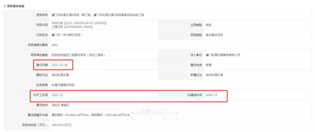 就在本月6日,廈門市軌道交通6號(hào)線一期工程-廈門市軌道交通6號(hào)線集美至同安段工程最新報(bào)建信息公布。