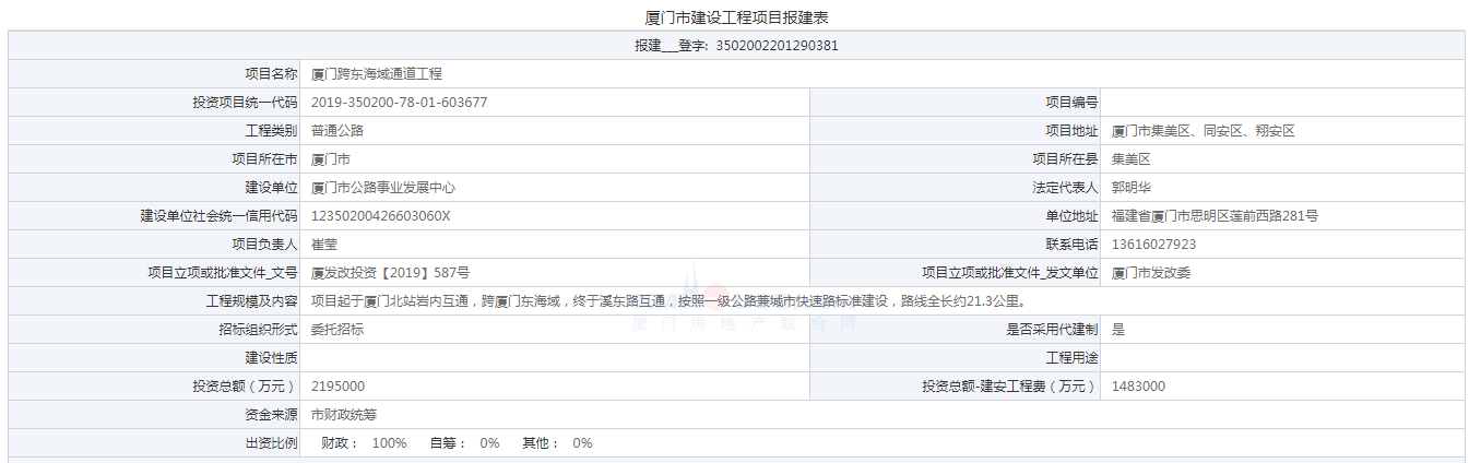 1月30日,廈門跨東海域通道工程最新報(bào)建信息公布。