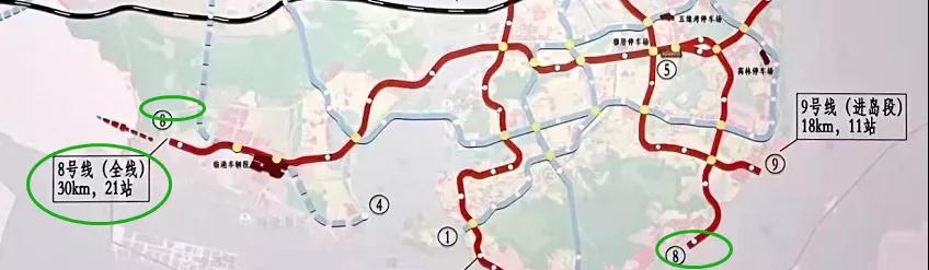 通過對比可知,路線基本一致,至于島內(nèi)段,5號線與8號線相匯,與9號線相交。整條線路,長度42公里,車站數(shù)24座。