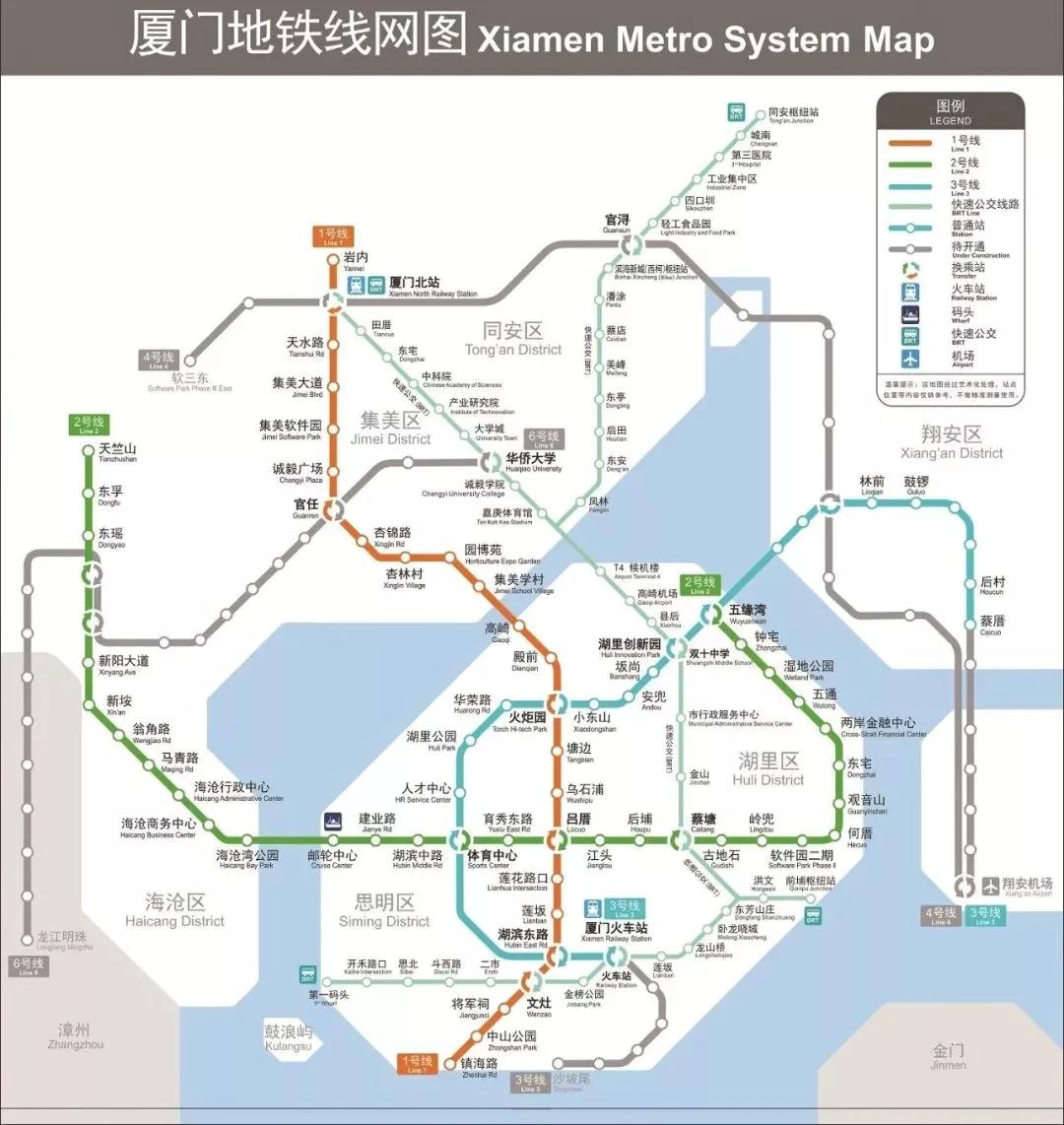 3號(hào)線(機(jī)場段):長10公里,設(shè)站5座,2016年9月開工,已完成車站主體結(jié)構(gòu)1座,在建車站2座,其余結(jié)合翔安機(jī)場填海造地及機(jī)場西區(qū)域中央地塊段工程同步實(shí)施,計(jì)劃翔安機(jī)場通航前半年(2026年6月)建成。