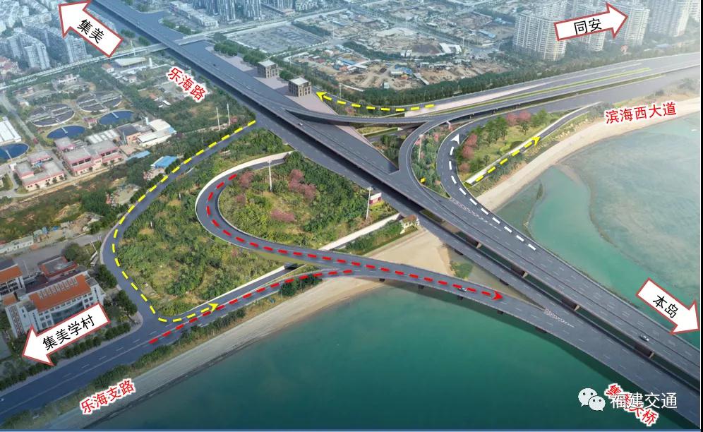 增設(shè)樂海支路進(jìn)島匝道并入集美大橋主線。