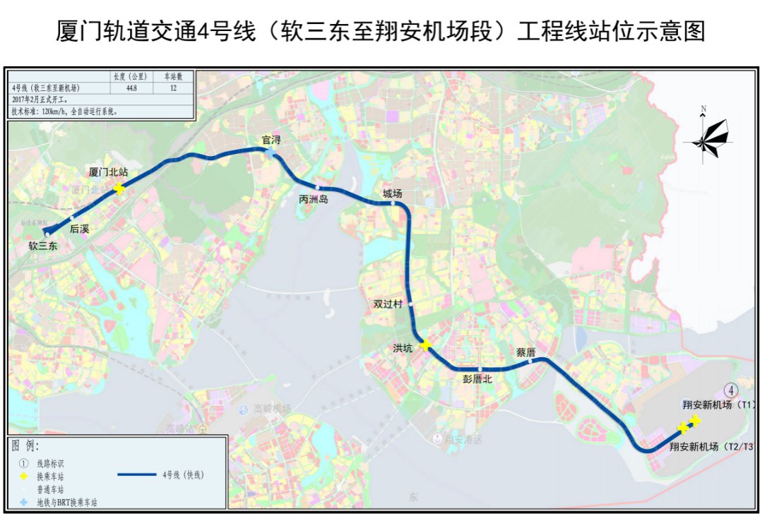 按照國家發(fā)改委批復(fù)的廈門地鐵“第二期建設(shè)計劃”,地鐵4號線線路起于海滄嵩嶼,終于翔安國際機場。不過,根據(jù)建設(shè)計劃安排,地鐵4號線一次規(guī)劃,分期施工。第一期工程為后溪至翔安機場段。