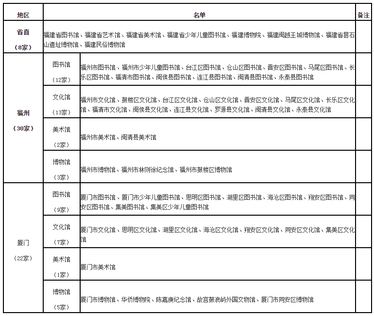 目前,2022年福州、廈門納入試點(diǎn)錯(cuò)時(shí)延時(shí)開放工作的公共文化場館名單出爐。具體開放時(shí)間請關(guān)注試點(diǎn)場館官方網(wǎng)站或微信公眾號。