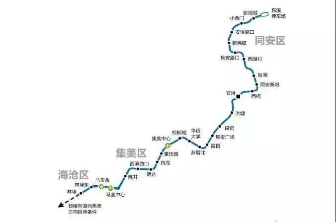事實(shí)上,廈門(mén)市軌道交通6號(hào)線一期工程為6號(hào)線林埭西站,工程終點(diǎn)為同安影視城站。線路大體呈西南—東北走向,途徑海滄、集美和同安3區(qū), 串聯(lián)了海滄區(qū)馬鑾灣片區(qū)、杏林老城區(qū)、集美新城、同安新城、同安老城等大型居住區(qū)。
