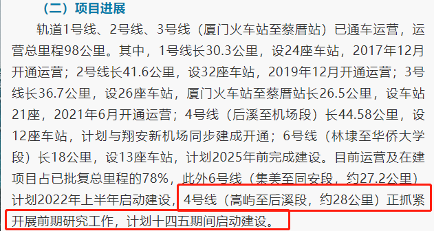 日前,投資廈門(mén)發(fā)布的《廈門(mén)軌道交通》,透露出了4號(hào)線二期的開(kāi)建時(shí)間: