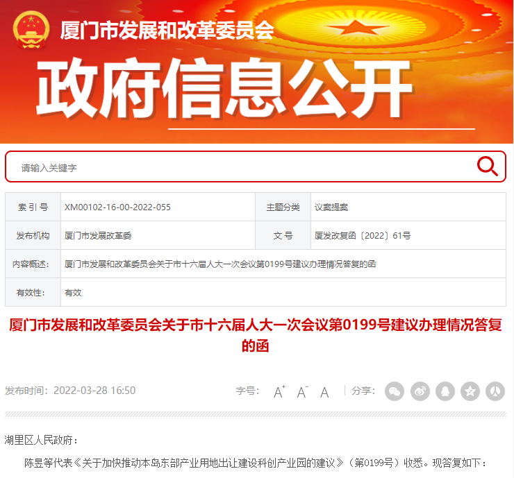 從廈門市發(fā)展和改革委員會(huì)關(guān)于市十六屆人大一次會(huì)議第0199號(hào)建議辦理情況答復(fù)的函可以get到以下幾大信息: