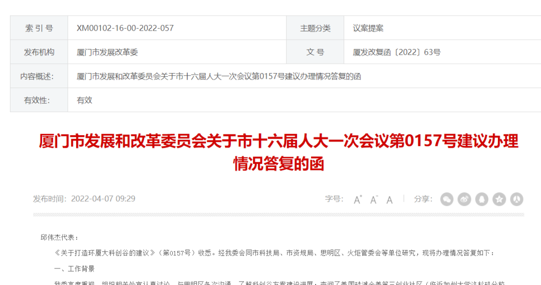 就在最近,廈門市發(fā)展和改革委員會(huì)發(fā)布關(guān)于市十六屆人大一次會(huì)議第0157號(hào)建議辦理情況答復(fù)的函。