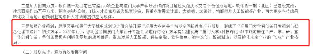 文件中提及,當(dāng)前環(huán)廈大科創(chuàng)谷的規(guī)劃設(shè)計(jì)已經(jīng)提上日程——