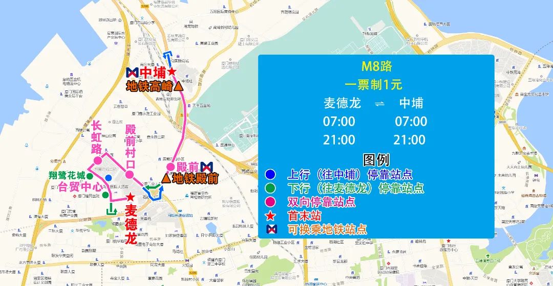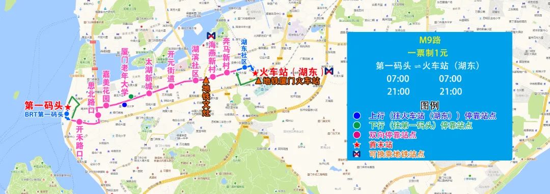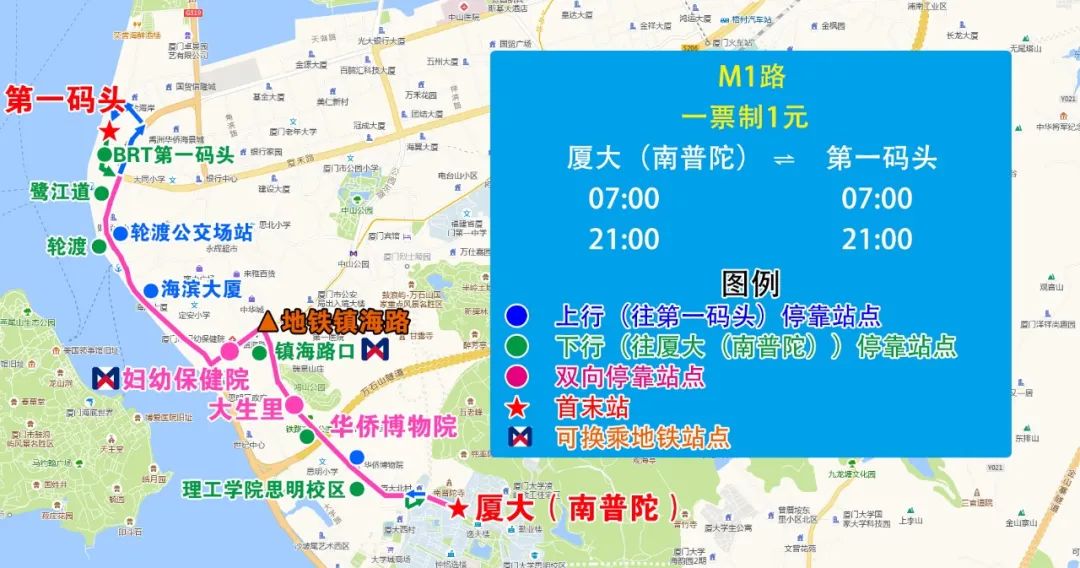 一、新增M1路,方便輪渡、思明南路片區(qū)乘客接駁地鐵鎮(zhèn)海路站