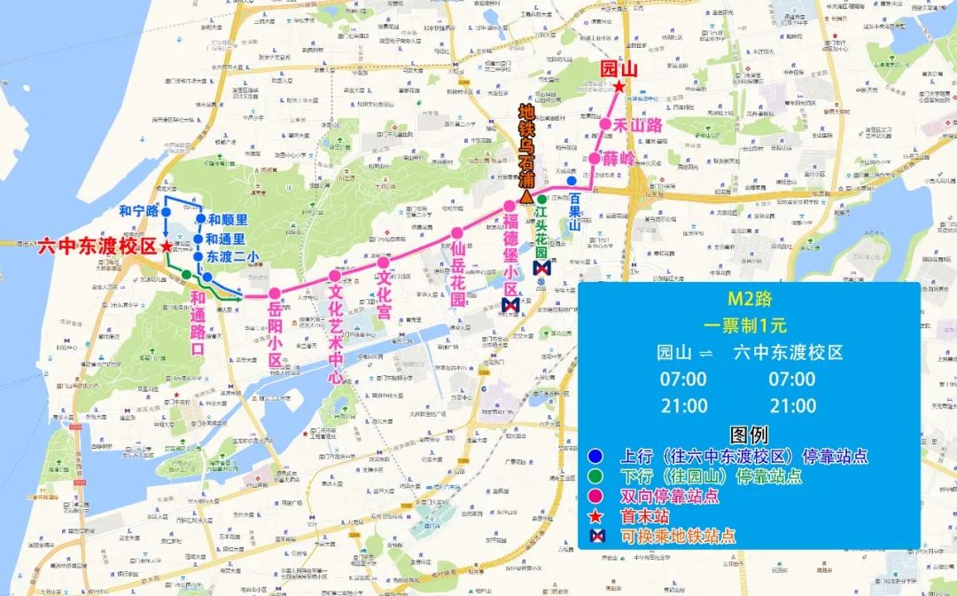 二、新增M2路,方便禾山路、仙岳路、和通片區(qū)乘客接駁地鐵烏石浦站