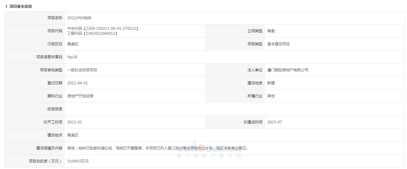 4月初,國貿(mào)后溪2022JP04地塊報(bào)建信息公布。報(bào)建表顯示,項(xiàng)目計(jì)劃明年1月開工,預(yù)計(jì)2025年7月建成。