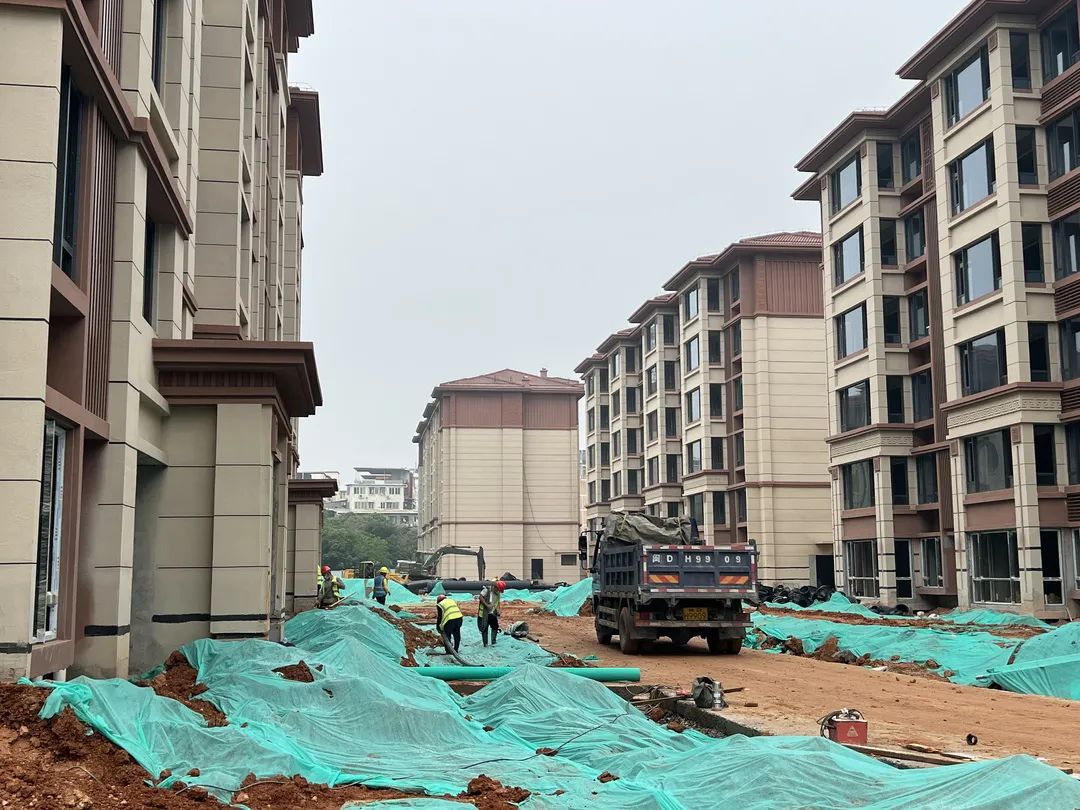 同時(shí),室外雨污管網(wǎng)正在鋪設(shè)