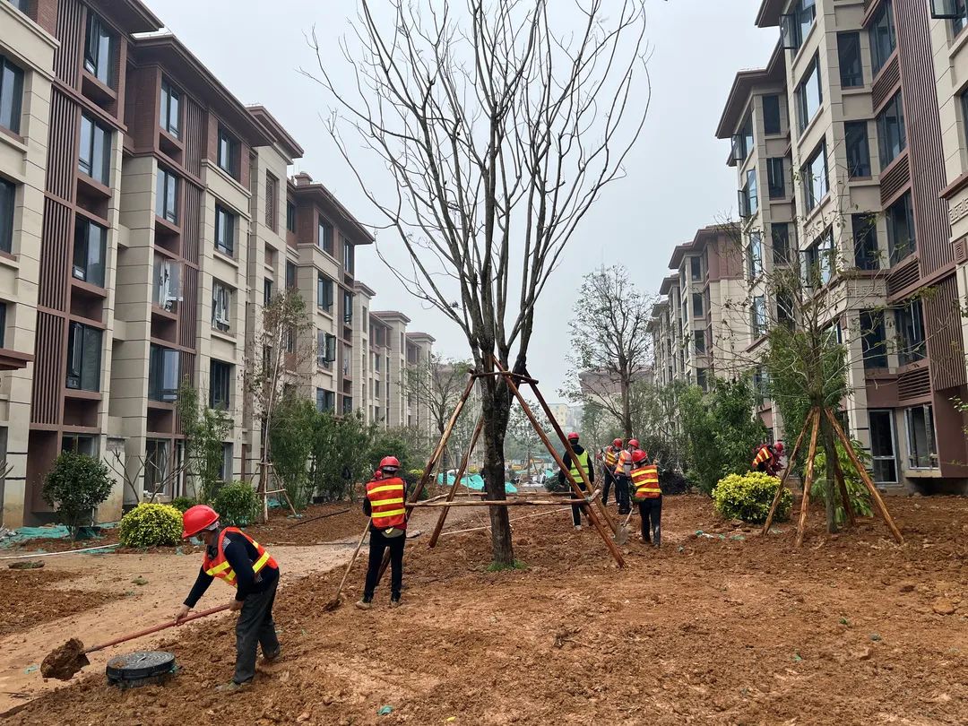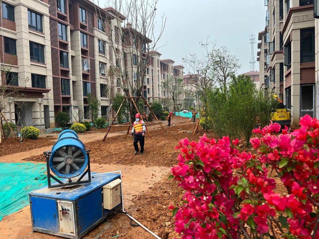 目前,小區(qū)室外空間正在進(jìn)行綠化施工
