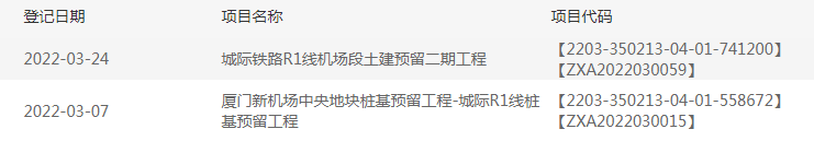 在廈門(mén)方面,3月24日城際鐵路R1線機(jī)場(chǎng)段土建預(yù)留二期工程報(bào)建信息公布。