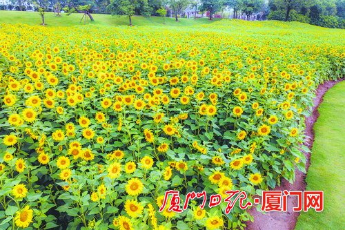廈門(mén)市園林植物園西山園上千平方米向日葵盛放。