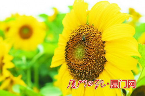 廈門(mén)市園林植物園西山園的上千平方米向日葵,日前剛剛開(kāi)花,引來(lái)蜜蜂蝴蝶曼舞花間,如同油畫(huà)。據(jù)了解,這片壯麗的黃金花海,花期可至6月中旬。