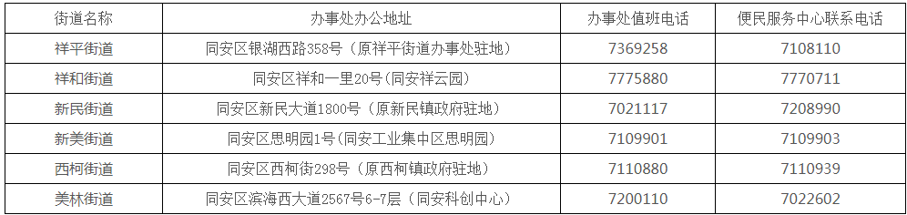 四、區(qū)劃調(diào)整后6個(gè)街道辦事處辦公地址、聯(lián)系電話如下: