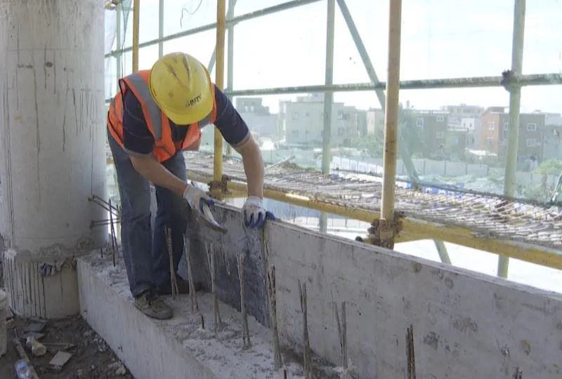 目前,已經(jīng)有兩棟樓體實現(xiàn)落架,還有兩棟樓體已落架近半;走進樓體內(nèi)部,工人們正在進行砌墻、瓷磚鋪貼、安裝設(shè)備等工作。