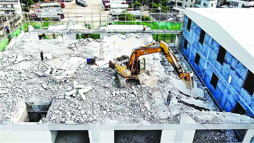 近日,在同安工業(yè)集中區(qū)的某企業(yè)內(nèi),隨著最后一堵墻體被拆除,一座非法占地面積達(dá)1500平方米的6層歷史“兩違”建筑物全部完成自拆。
