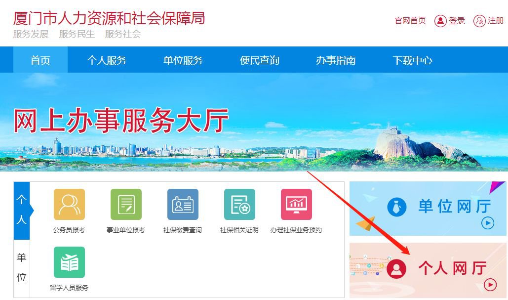 登錄廈門市人力資源和社會(huì)保障局網(wǎng)站(http://hrss.xm.gov.cn),點(diǎn)擊網(wǎng)上辦事,選擇個(gè)人網(wǎng)廳進(jìn)行辦理!