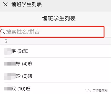 3、搜索框出可輸入自己的名字或班級,比如:輸入班級號7,會出來七班的分班結(jié)果