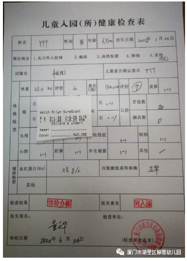 2、新生入園體檢卡