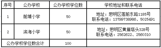 思明區(qū)招收隨遷子女積分入學的學校及學位情況: