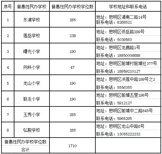 湖里區(qū)公、民辦小學可提供電腦派位學校學位情況