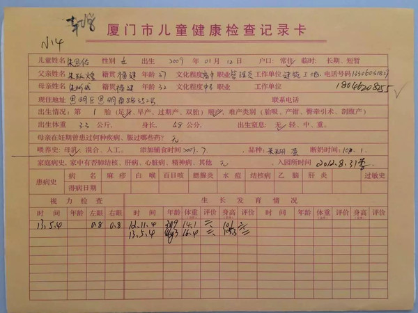 2、“健康卡”到底是什么,很多家長就是不明白。大致情況是這樣,健康卡的全稱是:廈門市兒童健康檢查記錄卡,是孩子出生40天后到社區(qū)醫(yī)院(婦幼)體檢建的檔,此次要去固定體檢的機(jī)構(gòu)(社區(qū)醫(yī)院或者婦幼)領(lǐng)取其中的黃卡,交給幼兒園。不過,如果沒有,也不要緊,只要在這次入園檢查時(shí),請(qǐng)醫(yī)生建檔(具體手續(xù)咨詢醫(yī)院),拿出黃卡就可以。