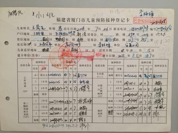 1、“免疫卡”,就是紅本的《廈門市兒童預(yù)防預(yù)防接種證》,家長還要到社區(qū)服務(wù)中心去拿白色的“福建省廈門市兒童預(yù)防接種登記卡”,不過,今年,據(jù)說思明區(qū)的幼兒園,如果是屬于市婦幼管的,那么,不用再去拿這個(gè)登記卡了,但是,如果是區(qū)婦幼管的,仍然要。