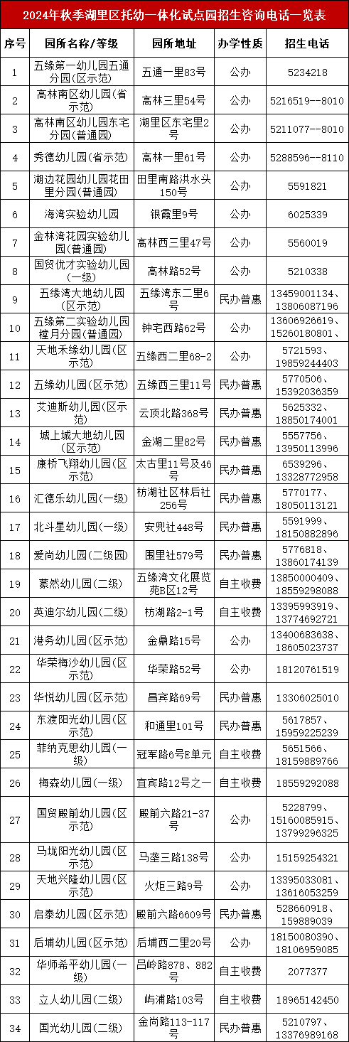 此前,湖里區(qū)公布34所有招收小小班的公民辦幼兒園名單,