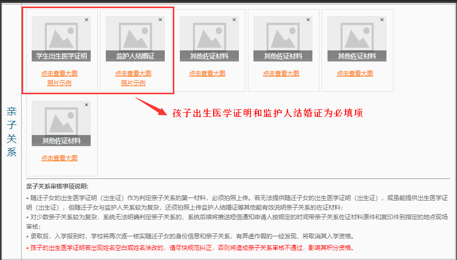 請上傳孩子的出生醫(yī)學(xué)證明和監(jiān)護(hù)人結(jié)婚證。