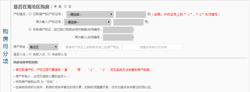 如果在海滄區(qū)有購房,選擇“是”,并根據(jù)房產(chǎn)情況認(rèn)真填寫相對應(yīng)的房產(chǎn)信息,系統(tǒng)會(huì)根據(jù)所填寫的信息進(jìn)行審核加分。