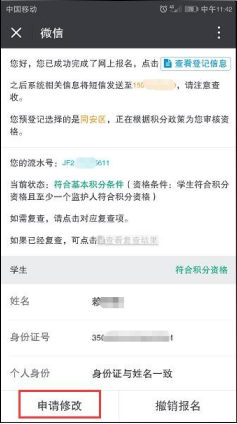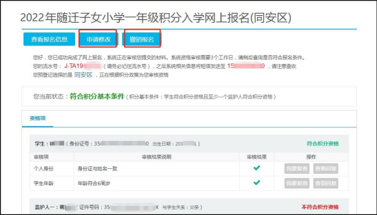 2、“申請(qǐng)修改”審核通過,信息修改好后記得重新提交報(bào)名,否則會(huì)視為自動(dòng)放棄積分入學(xué)