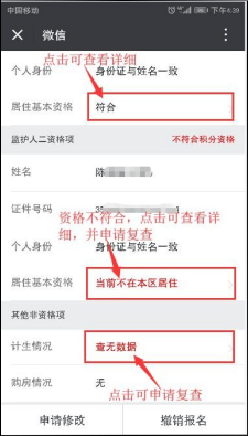 家長(zhǎng)可以查看所填信息的審核狀態(tài)情況。本次報(bào)名如有信息填寫錯(cuò)誤的,可以點(diǎn)擊“申請(qǐng)修改”。對(duì)審核結(jié)果有疑議的可以點(diǎn)擊“申請(qǐng)復(fù)查”。如果不想報(bào)名或是想換區(qū)的,可以點(diǎn)擊“撤銷報(bào)名”。