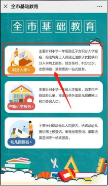 登錄i 廈門服務(wù)平臺(tái)進(jìn)入“網(wǎng)站首頁(yè)”,找到“基礎(chǔ)教育報(bào)名”的滾動(dòng)圖片點(diǎn)擊進(jìn)入后,找到“積分入學(xué)”點(diǎn)擊進(jìn)入積分入學(xué)頁(yè)面進(jìn)行報(bào)名登記,如下圖: